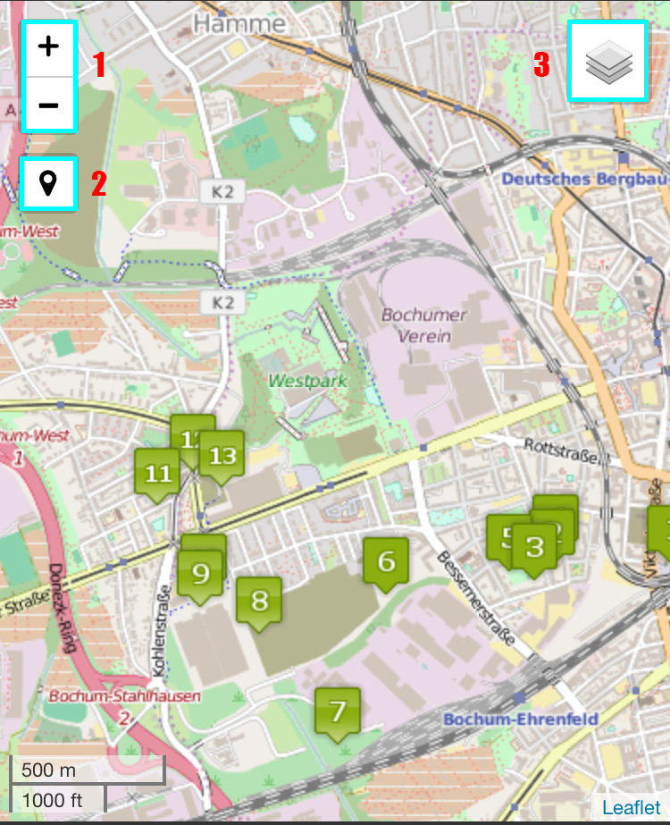 Die Navigation innerhalb der Kartennansicht erfolgt intuitiv wie auch in anderen Kartenanwendungen auf Geräten mit Touch-Display. Mit einem Wisch verschieben Sie die Kartenansicht, zum Zoomen werden zwei Finger auf dem Touch-Display auseinander- bzw. zusammengezogen.