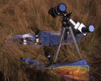 This image of my equipment was taken after the eclipse as you can see from the bottle of fine zambian MOSI beer. |