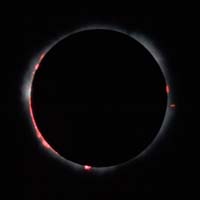 Unsere Beobachtung der totalen Sonnenfinsternis in der Nähe von Shabla im Norden Bulgariens waren ein voller Erfolg. Mit einer Gruppe von 2 niederländischen, 1 canadischen, 4 bulgarischen und 7 deutschen Amateurastronomen waren wir auf einem einsamen Feldweg auf 43°32'21" Nord und 28°33'59" Ost. Der Himmel war komplett klar ohne eine Wolke. Die Korona hatte die typische Maximumform mit Streamern in alle Richtungen. Visuell waren auch einige Protuberanzen zu erkennen. Hier sind die ersten Bilder, die mit den 500 mm und 1100 mm Teleobjektiven