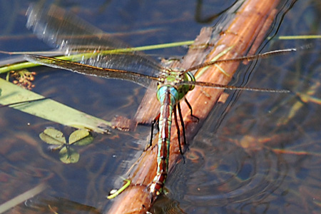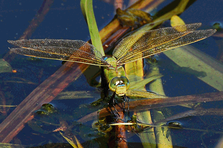 Familie: Edellibellen (Aeshnidae) große Königslibelle, Weibchen Anax imperator (Leach, 1815) Flügelspannweite: 95-110 mm |