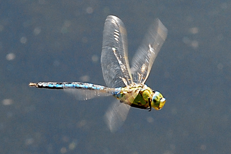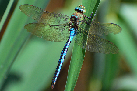 Familie: Edellibellen (Aeshnidae) große Königslibelle, Männchen Anax imperator (Leach, 1815) Flügelspannweite: 95-110 mm |