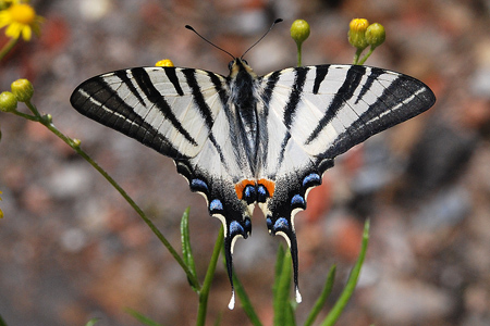 Familie: Ritterfalter (Papilionidae) Segelfalter Iphiclides podalirius (Linnaeus, 1758) Spannweite: 50-70 mm |