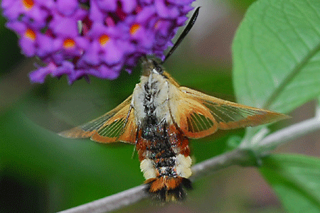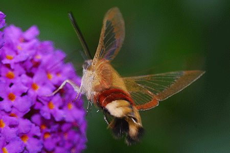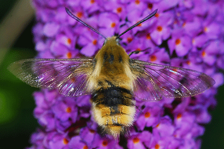 Familie: Schwärmer (Sphingidae) Hummelschwärmer Hemaris fuciformis (Linnaeus, 1758) Spannweite: 40-47 mm |