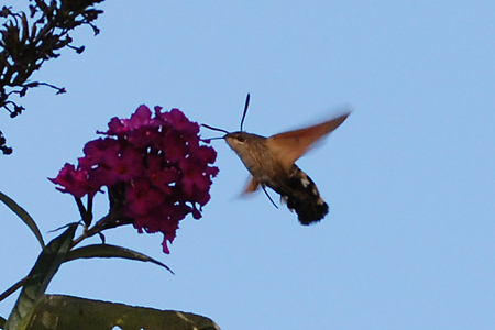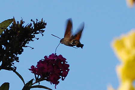 Familie: Schwärmer (Sphingidae) Taubenschwänzchen Taubenschwanz Karpfenschwanz Kolibrischwärmer Kolibrifalter Macroglossum stellatarum (Linnaeus, 1758) Spannweite: 36-50 mm |