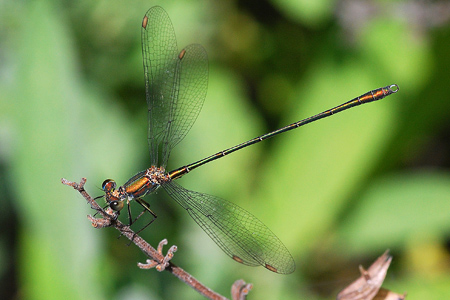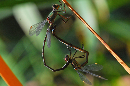 Familie: Teichjungfern (Lestidae) gemeine Weidenjungfer Chalcolestes viridis (Vander Linden, 1825) Flügelspannweite: 50-60 mm |