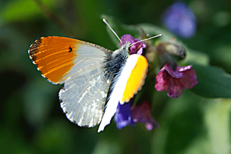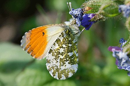 Familie: Weißlinge (Pieridae) Aurorafalter, Männchen Anthocaris cardamines (Linnaeus, 1758) Spannweite: 35-45 mm |