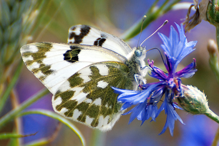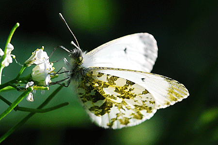 Familie: Weißlinge (Pieridae) Aurorafalter, Weibchen Anthocaris cardamines (Linnaeus, 1758) Spannweite: 35-45 mm |