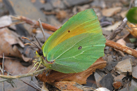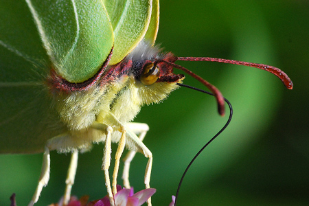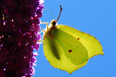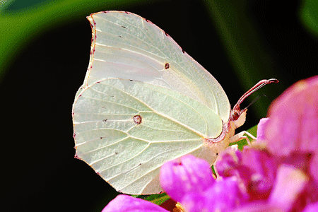 Familie: Weißlinge (Pieridae) Zitronenfalter, Weibchen Gonepteryx rhamni (Linnaeus, 1758) Spannweite: 50-55 mm |