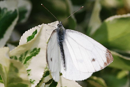 Familie: Weißlinge (Pieridae) kleiner Kohlweißling, Männchen Pieris rapae (Linnaeus, 1758) Spannweite: 40-50 mm |
