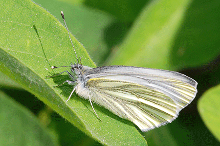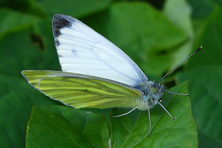 Familie: Weißlinge (Pieridae) Grünader-Weißling, Männchen Rapsweißling Pieris napi (Linnaeus, 1758) Spannweite: 35-45 mm |