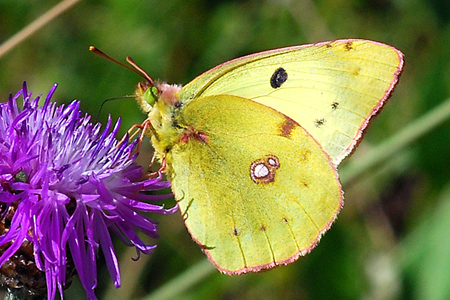 Familie: Weißlinge (Pieridae) goldene Acht Posthörnchen, kleines Posthörnchen Weißklee-Gelbling, gemeiner Gelbling gelber Heufalter, gemeiner Heufalter Colias hyale (Linnaeus, 1758) Spannweite: 35-40 mm |