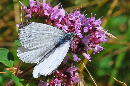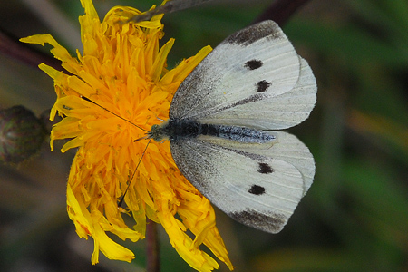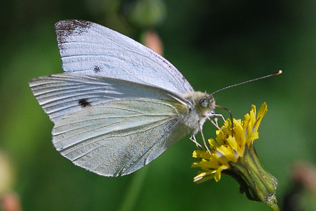 Familie: Weißlinge (Pieridae) kleiner Kohlweißling, Weibchen Pieris rapae (Linnaeus, 1758) Spannweite: 40-50 mm |