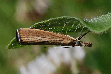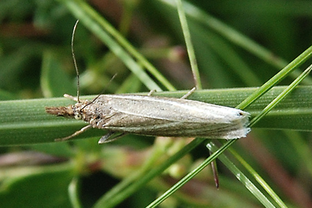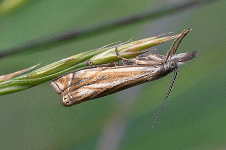 Familie: (Rüssel-)Zünsler Crambidae) keine deutsche Bezeichnung Crambus lathoniellus (Zincken, 1817) Spannweite: 18-22 mm |