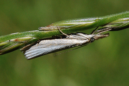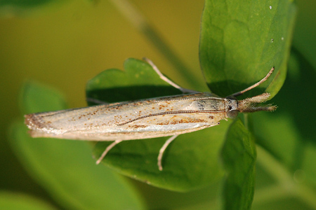 Familie: (Rüssel-)Zünsler Crambidae) weißer Graszünsler Crambus perlella (Scopoli, 1763) Spannweite: 25-28 mm |
