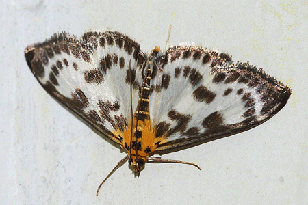 Familie: (Rüssel-)Zünsler (Crambidae) keine deutsche Bezeichnung Scoparia ambigualis (Treitschke, 1829) Spannweite: 15-20 mm |