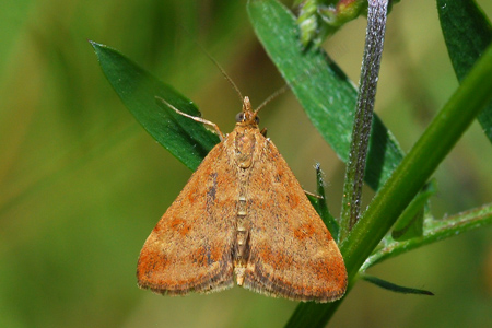 Familie: (Rüssel-)Zünsler (Crambidae) olivbrauner Zünsler olivenbrauner Zünsler Pyrausta despicata (Scopoli, 1763) Synonym: Pyrausta cespitalis Spannweite: 14-20 mm |