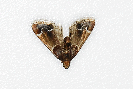 Familie: Zünsler (Pyralidae) Mehlzünsler Pyralis farinalis (Linnaeus, 1758) Spannweite: 18-30 mm |