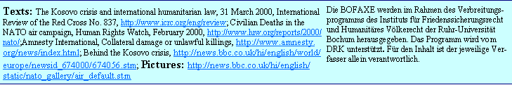 Vor dem Sicherheitsrat der Vereinten Nationen hat die Chefanklägerin des Internationalen Tribunals für das ehemalige Jugoslawien, Carla del Ponte, am 2. Juni darauf hingewiesen, dass das Tribunal keine Ermittlungen gegen die NATO aufnehmen wird. Darauf hat heute der NATO-Generalsekretär Robertson in seiner Kritik am Amnesty-Bericht über den NATO-Einsatz im Kosovo verwiesen. Erstaunlich ist weniger das von del Ponte mitgeteilte Ergebnis, als die Begründung. Danach habe es Fehler der NATO gegeben, aber keine rechtswidrigen NATO-Angriffe. Der pauschale Hinweis auf die NATO-Angriffe perpetuiert den Eindruck, die NATO habe für die Einhaltung der durch das humanitäre Völkerrecht gebotenen Pflichten gesorgt, obwohl inzwischen bekannt ist, dass die Entscheidungen über Zielauswahl und Angriff bei den Verantwortlichen der jeweiligen, den Angriff durchführenden einzelnen NATO-Staaten lag. Die für eine Beurteilung der Rechtmäßigkeit eines Angriffs notwendigen Angaben über Flugzeugtyp, Angriffshöhe etc. waren bisher nicht öffentlich verfügbar und man wird gespannt sein müssen, ob diese Informationen von den relevanten NATO-Staaten an das Tribunal tatsächlich weitergegegeben worden sind und in welcher Weise diese der Öffentlichkeit zugänglich gemacht werden. Besondere Aufmerksamkeit muss man der Feststellung entgegenbringen, dass die NATO keine sog. „ unlawful military targets" angegriffen hat. Der Charakter einzelner, gezielt von einzelnen NATO-Staaten in Serbien zerstörter, Objekte war weder im Bündnis einheitlich beurteil worden, noch hatte das geltende humanitäre Völkerrecht solche Objekte als legitime Angriffsziele anerkannt. Die Erklärung von del Ponte deutet damit auch an, dass die Anklagebehörde bei der Beurteilung der NATO-Angriffe von einem eher zurückhaltenden Verständnis des humanitären Völkerrechts ausgeht: Eine Haltung, die sich sehr von ihrer bisherigen progressiven Ermittlungspraxis in anderen Fällen unterscheidet.