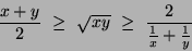 das arithmetische, geometrische und harmonische Mittel von x und y .