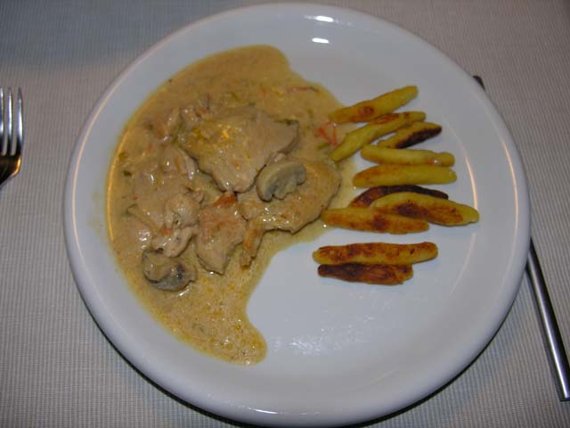 Schupfnudeln im heißen Fett goldbraun braten. Mit dem Geschnetzelten anrichten.
