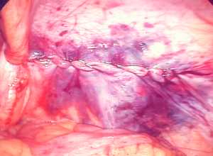 | Abschließend wird das Bauchfell mit einer