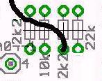 Da ist zum Anderen eine Verbindung vom 2k2-Widerstand zur Stiftleiste.