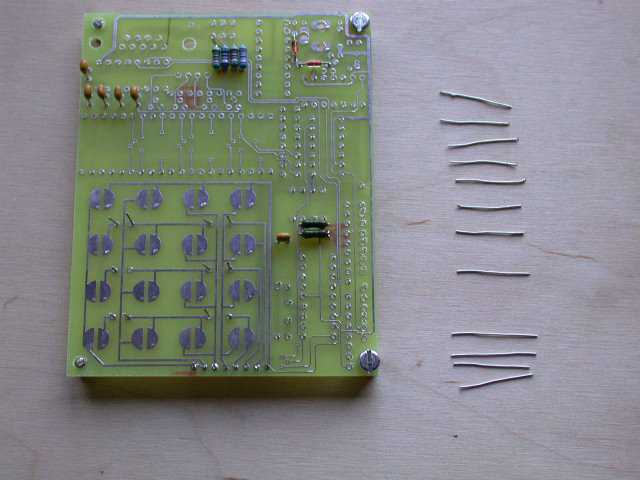 Warnung: Sind die Siebensegmentanzeigen erst eingelötet, kommt man an diese Verbindungen von oben nicht mehr heran. Also umbedingt vorher auf Funktion testen!