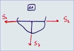 | Fz=0: S4*sin(53,13°) + S6*sin(53,13°) + S5 = 0 <=> S6 = (-S5 - S6*sin(53,13°)) / sin(53,13°) => S6 = 902,00 kN (Z)