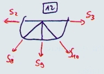| Fz=0: S8*sin(53,13°) + S9 + S10*sin(53,13°) = 0 <=> S10 = ( -S9 - S8*sin(53,13°) / sin(53,13°) => S10 = 261,50 kN (Z)