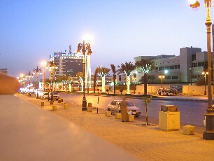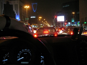 Blick vom Faisaliah Tower zum Kingdom Tower (rechts: Ulaya Street, links: King Fahd Road) |